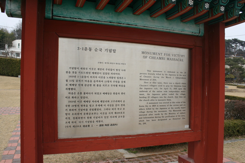 - 제암리~고주리~수촌리 등 화성지역의 삼일운동 사적지를 연결하는 화성삼일운동 순례길 만들어야