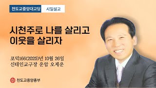 포덕 166년 10월 26일 천도교중앙대교당 시일설교 신태인교구장 운암 오제운 "시천주로 나를 살리고 이웃을…