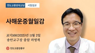 포덕 166년 11월 2일 천도교중앙대교당 시일설교 송탄교구장 중암 라명재 "사해운중월일감"