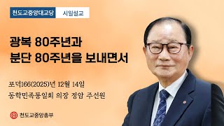 포덕 166년 12월 14일 중앙대교당 시일설교 동학민족통일회 의장 정암 주선원 "광복 80주년과 분단 80…